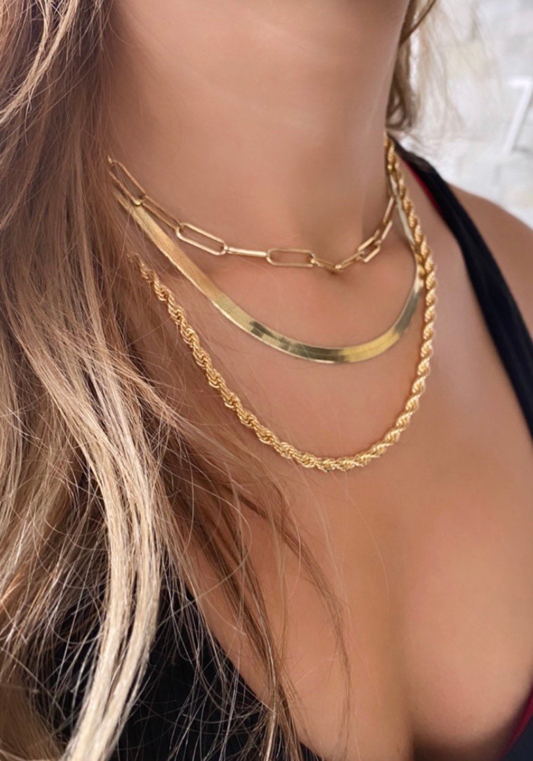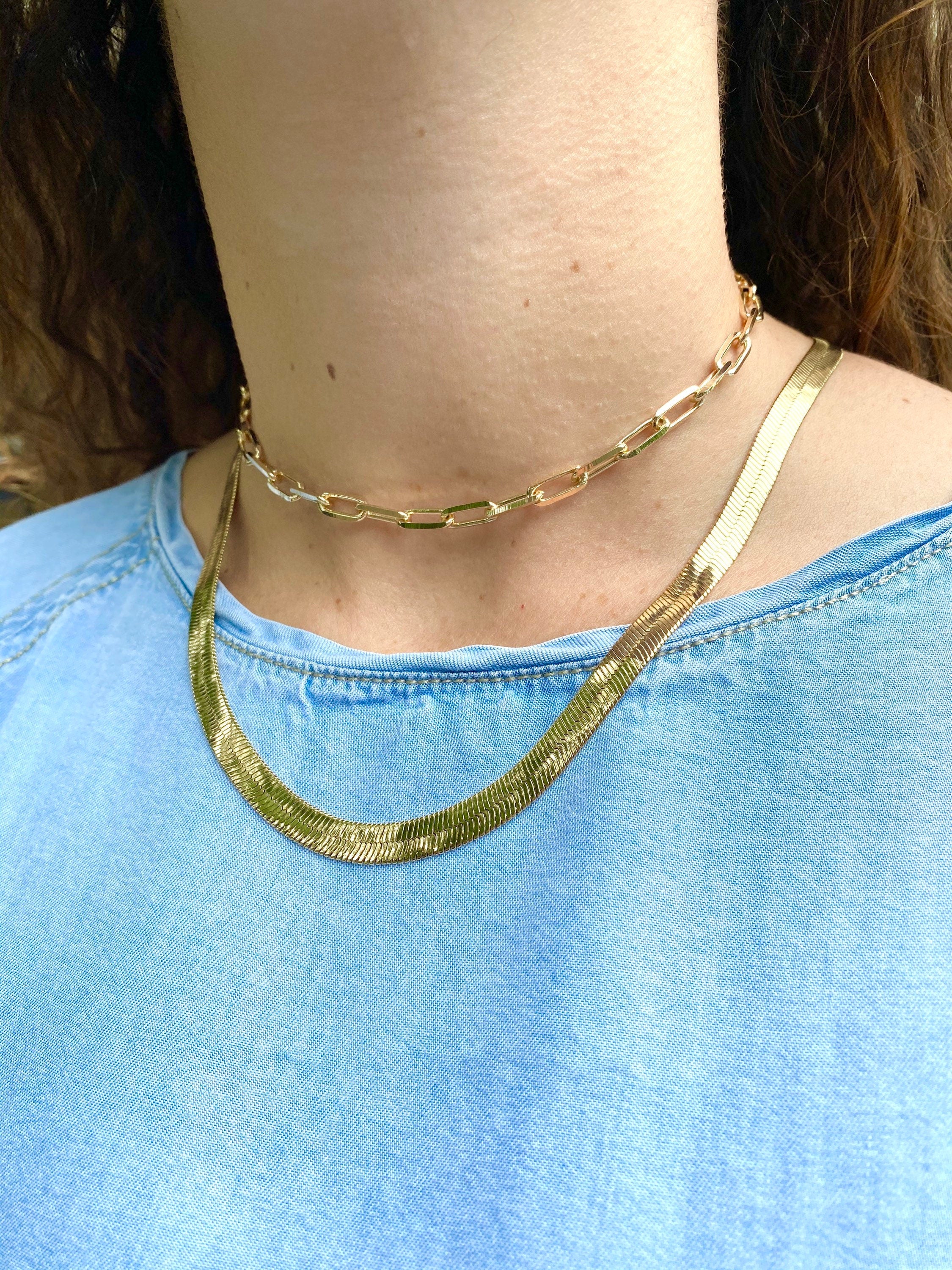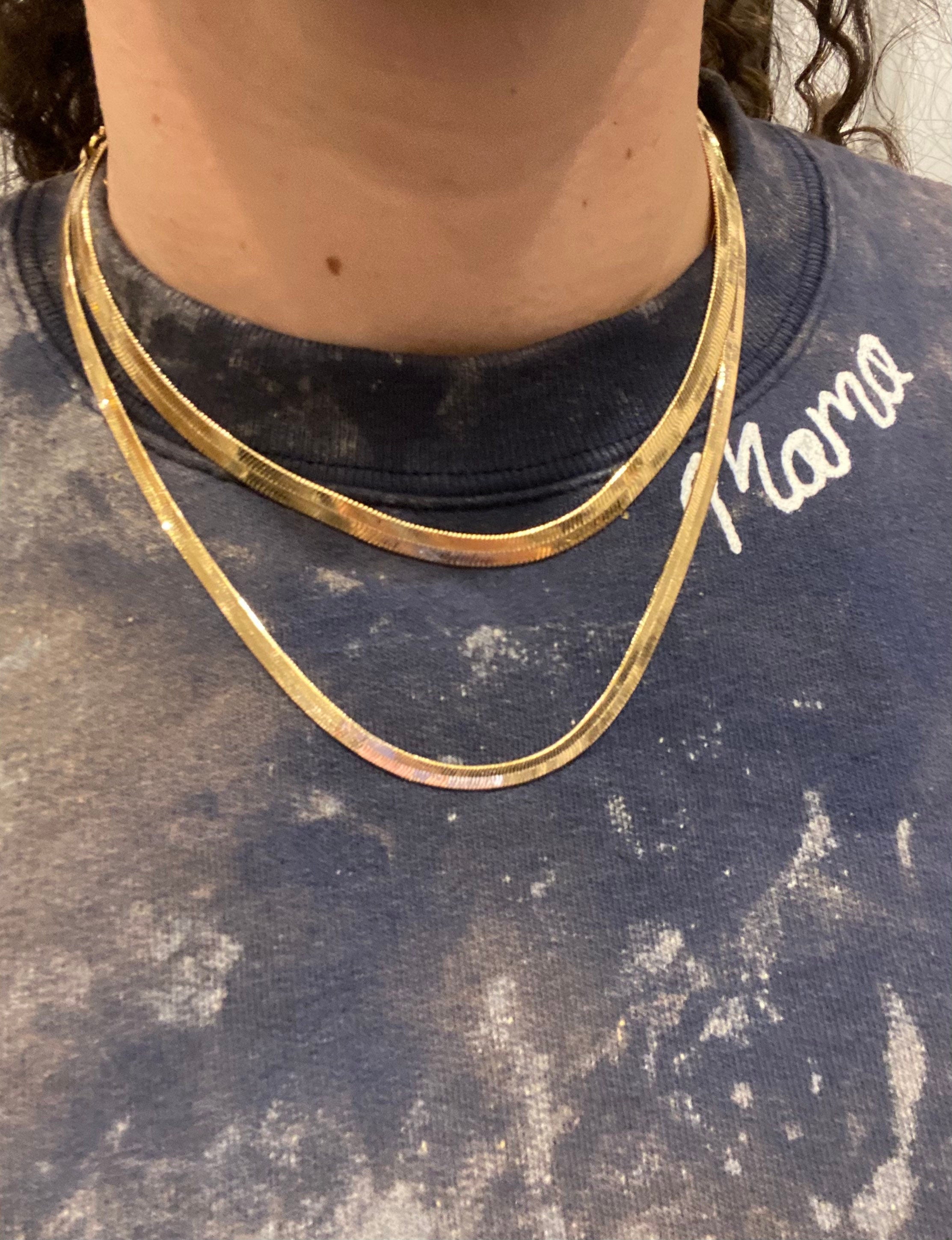 Beautiful and trendy gold filled herringbone chain necklaces in 3 different thicknesses