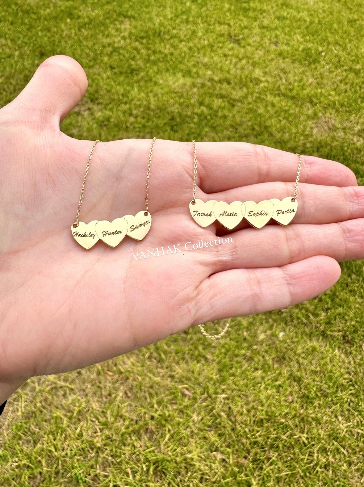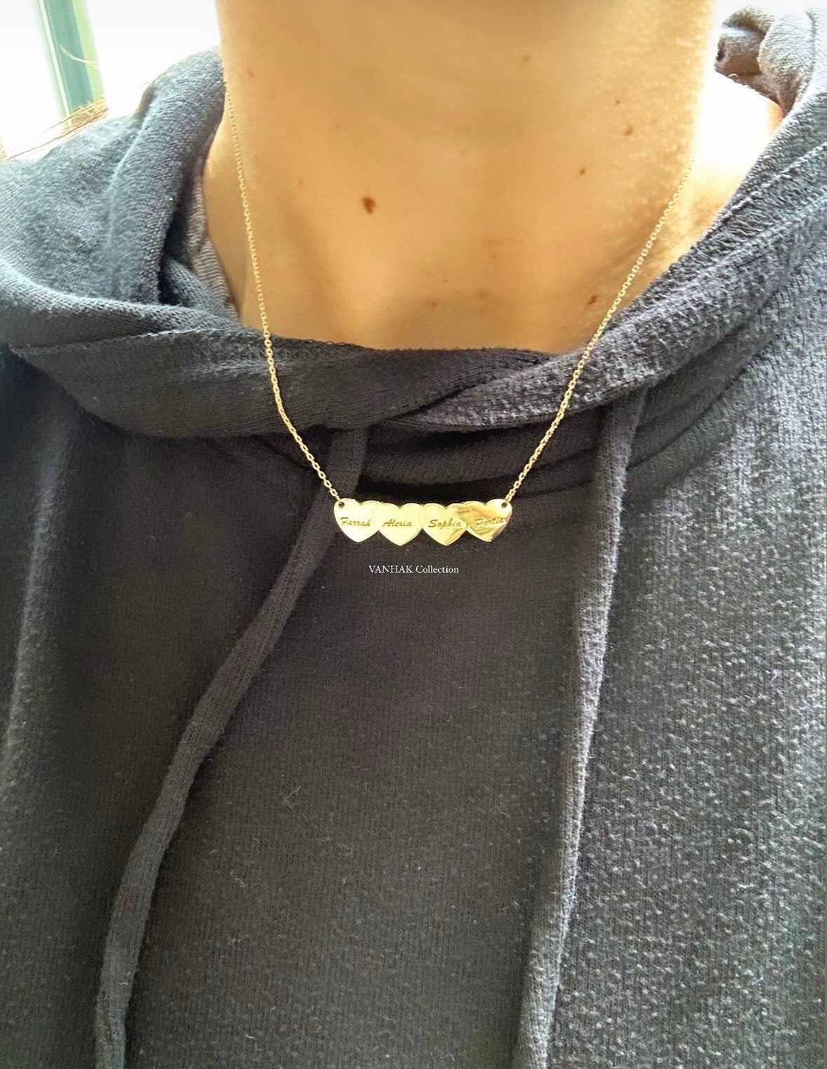 Engraved hearts mommy necklace by Kathy Hilton | Hearts letters / initials necklace| engraved Mommy necklace with hearts