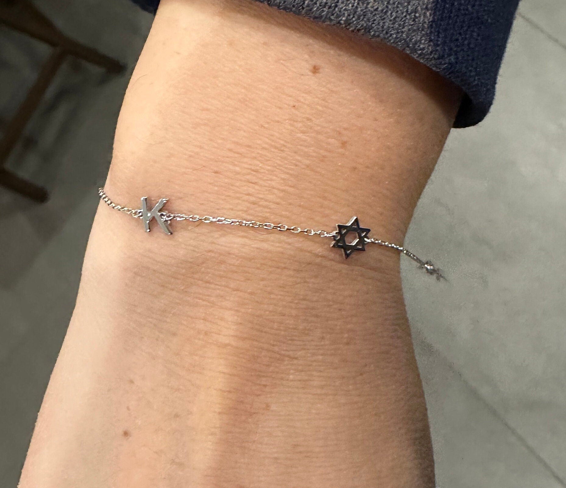 Initial jewish star bracelet. Initial plus Star of David bracelet. Custom initial Jewish star bracelet. Personalized Jewish star bracelets.