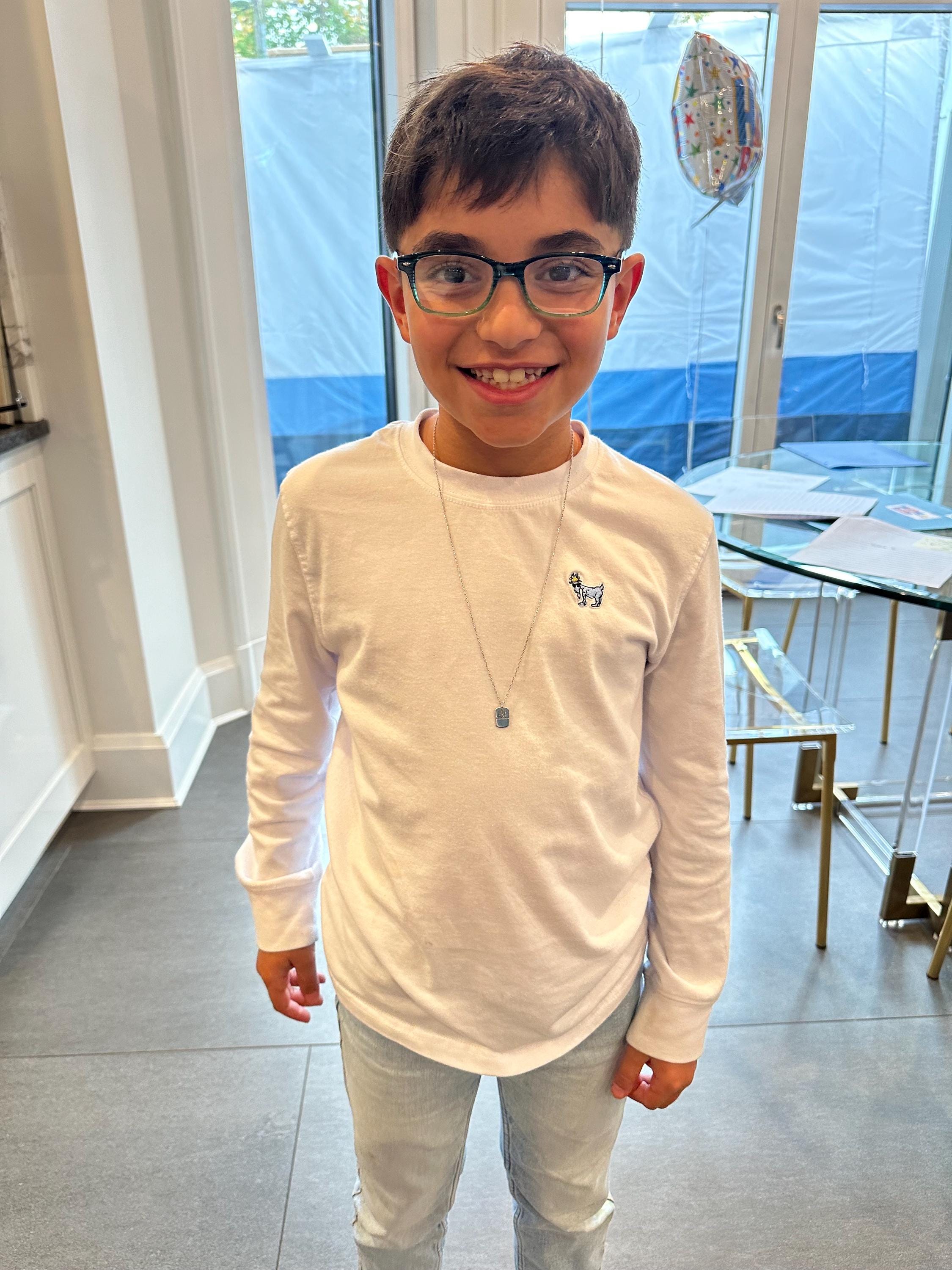 Also, if you do not want the little diamonds on your chain just say so in the notes section (the boy in the photos is wearing it without the stones)