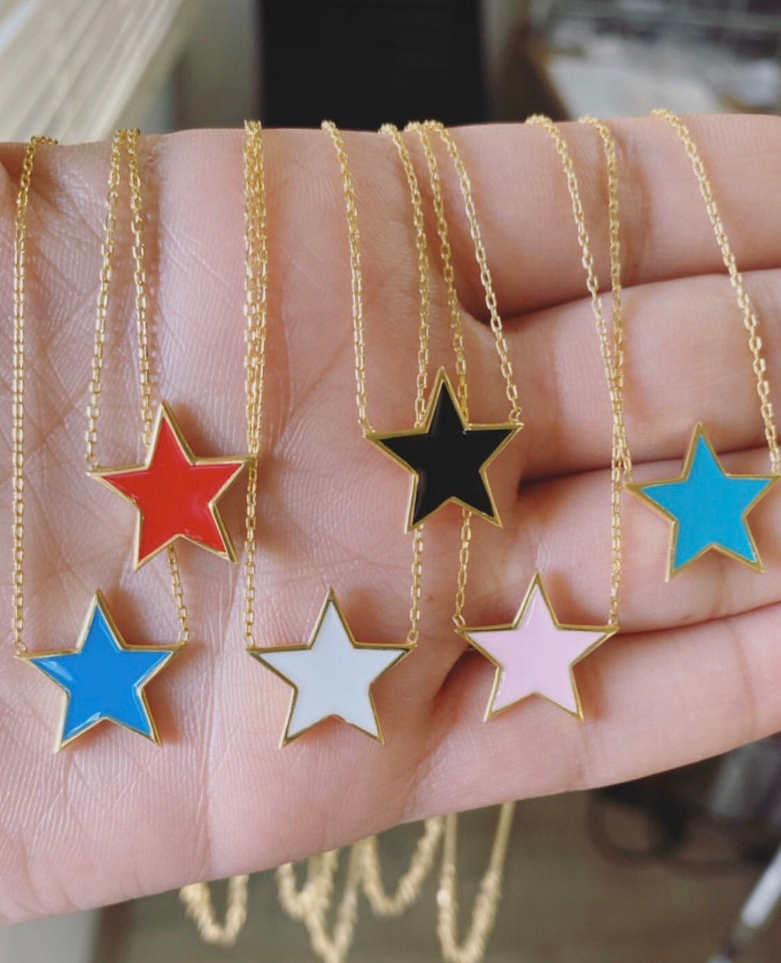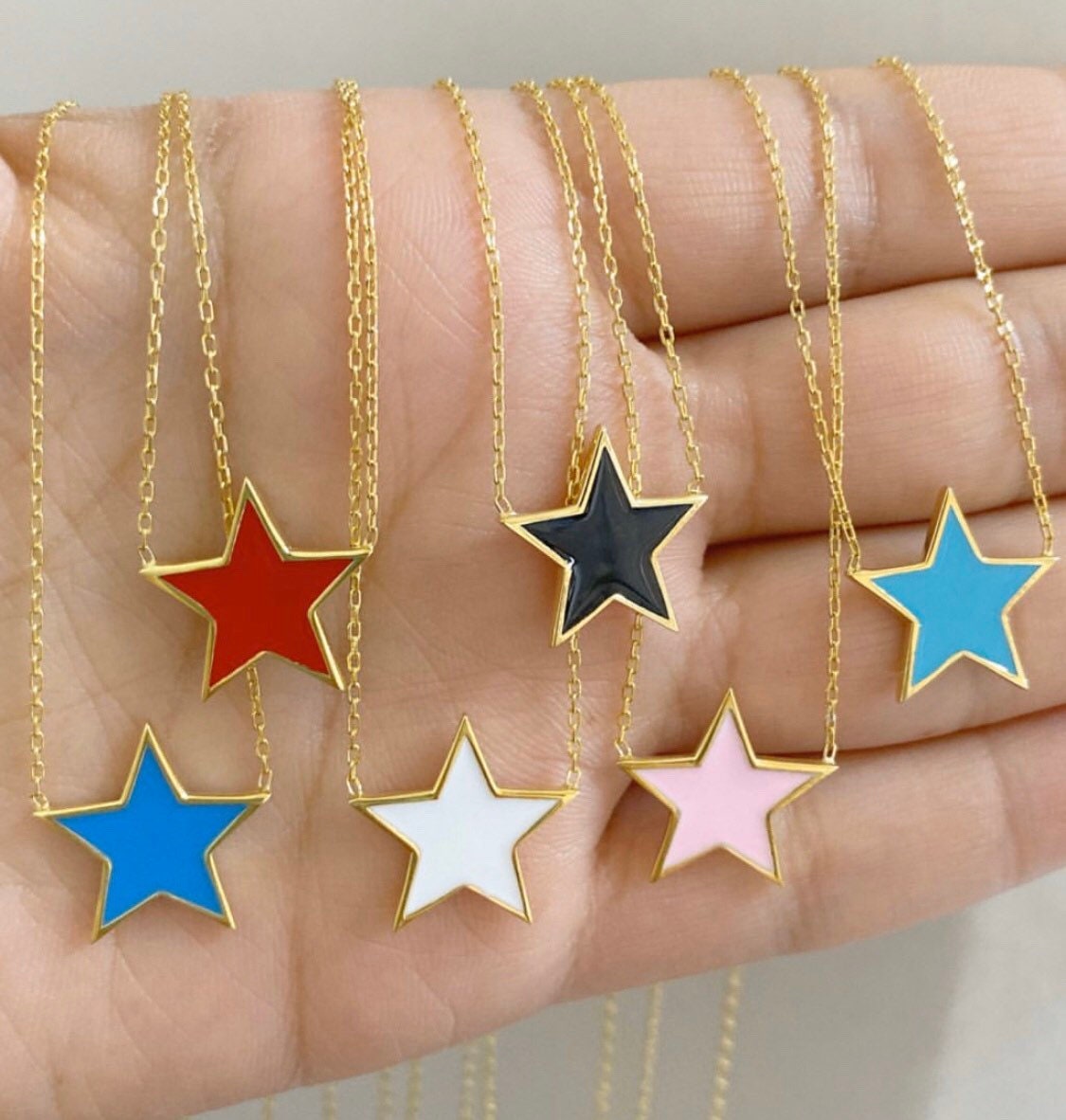 Beautiful star necklaces in different enamel colors